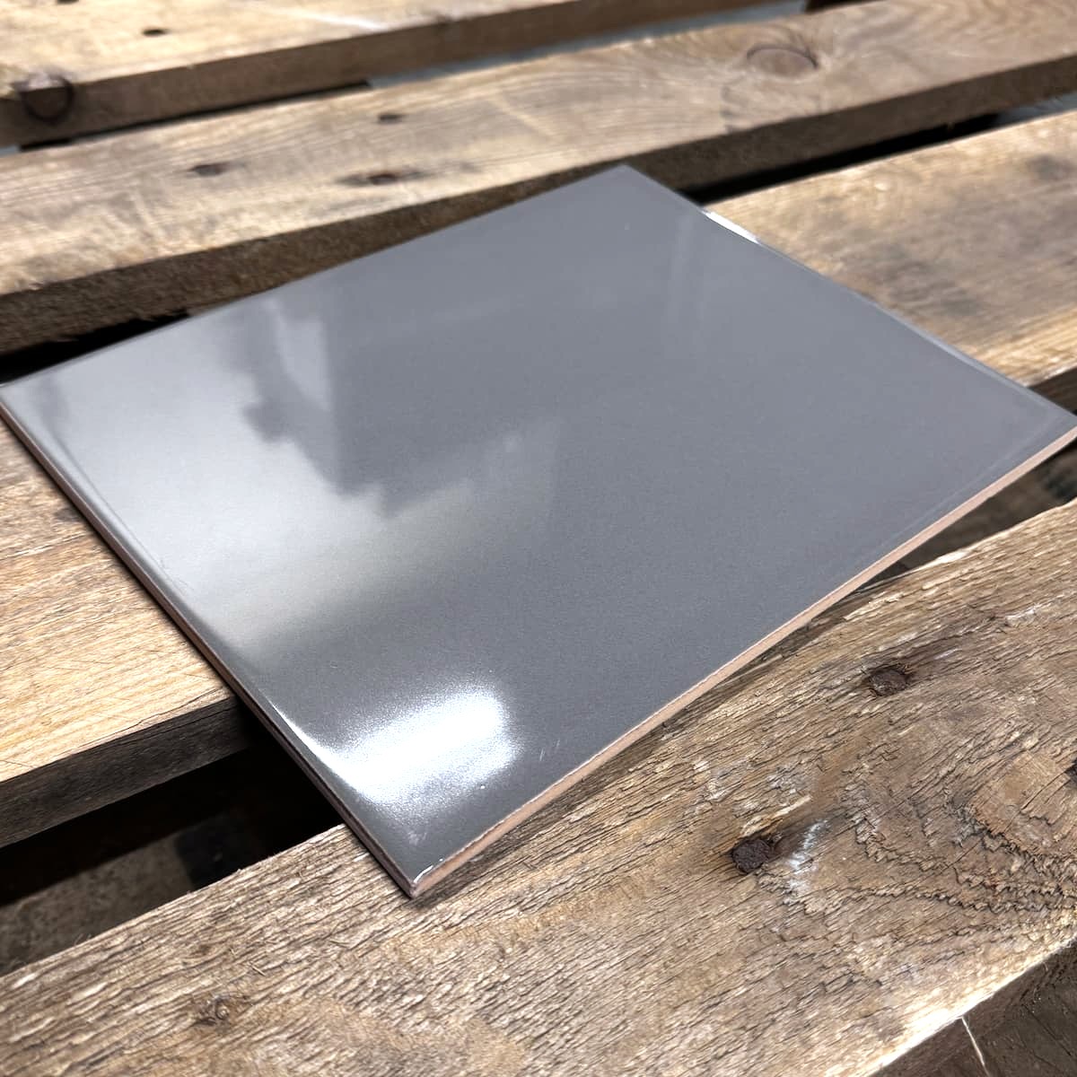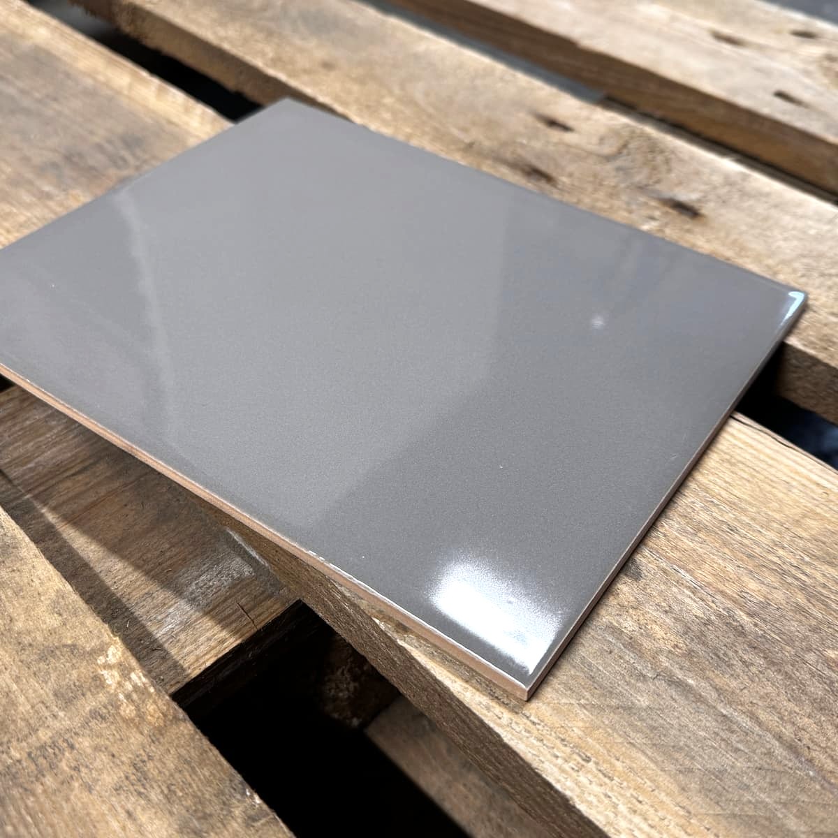 Grijze wandtegel met glanzende afwerking. Stijlvol en tijdloos.