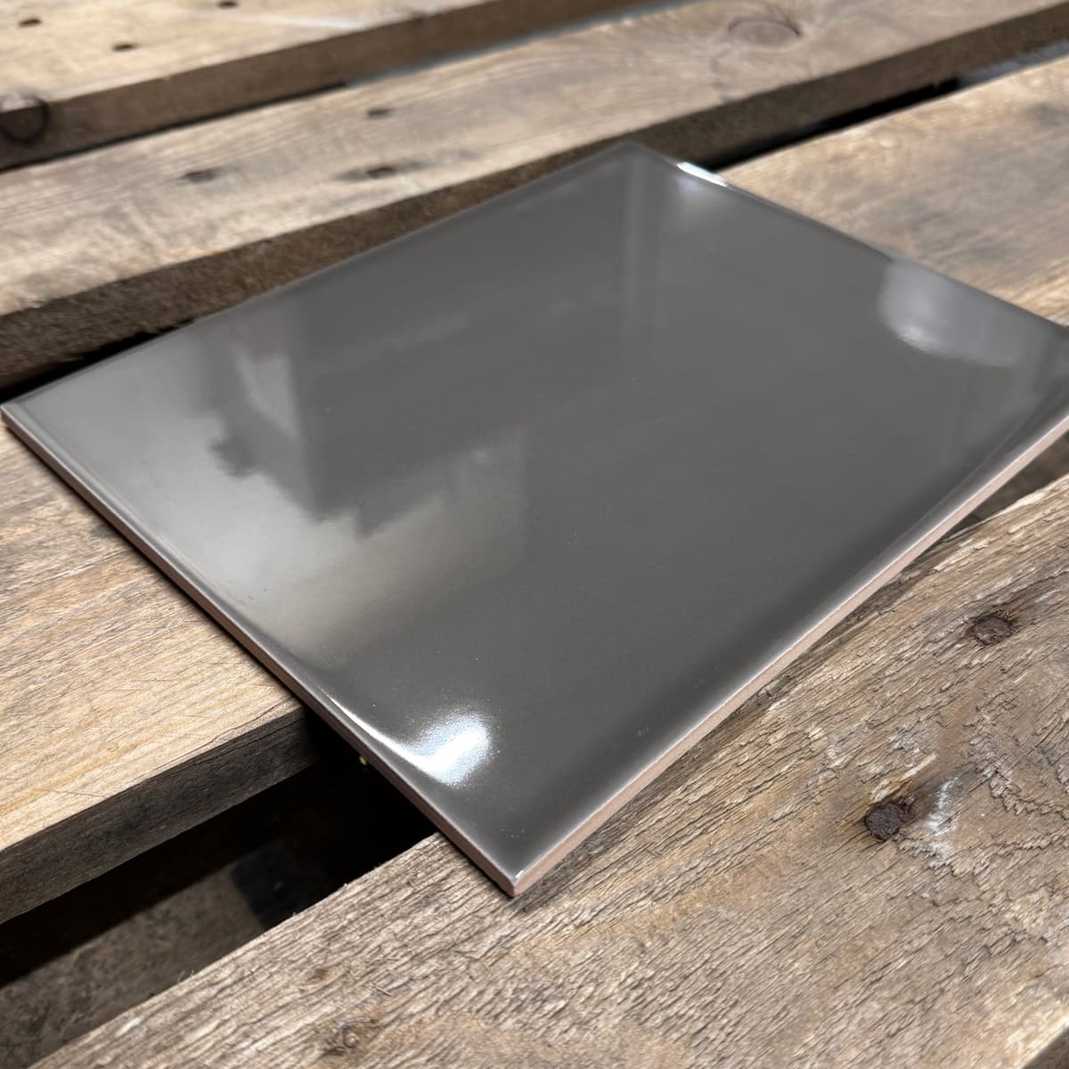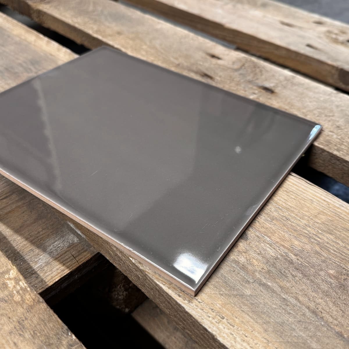 Tijdloze glanzende wandtegel in warme taupe kleur.