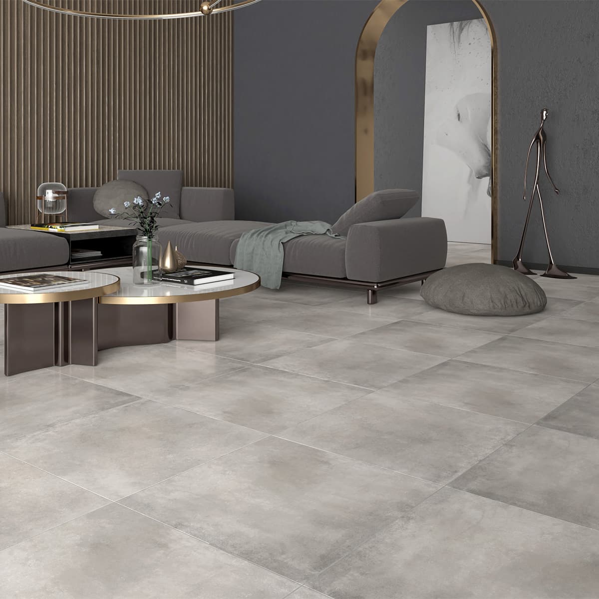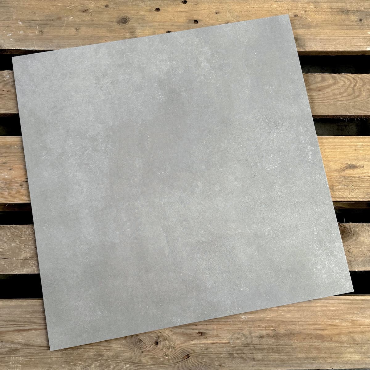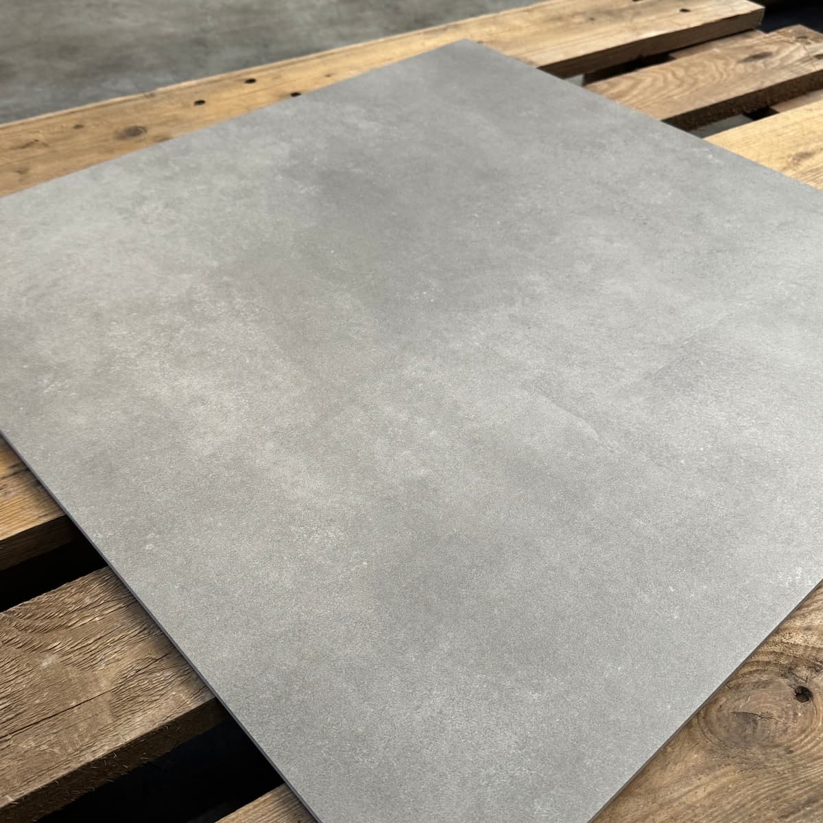 Tegel in een mooie grijze subtiele betonlook. Een veelzijdige tegel die te gebruiken is van woonkamer tot badkamer!