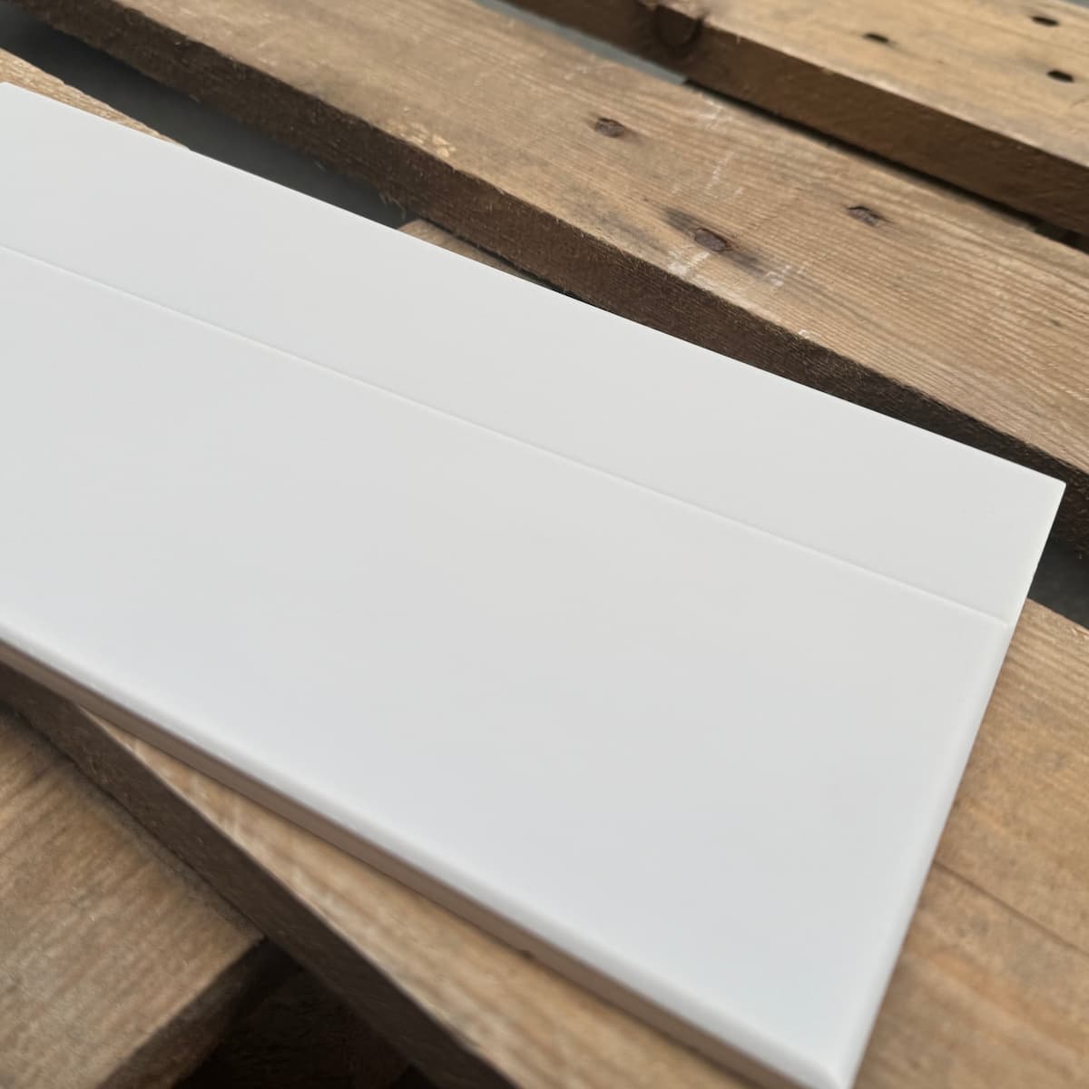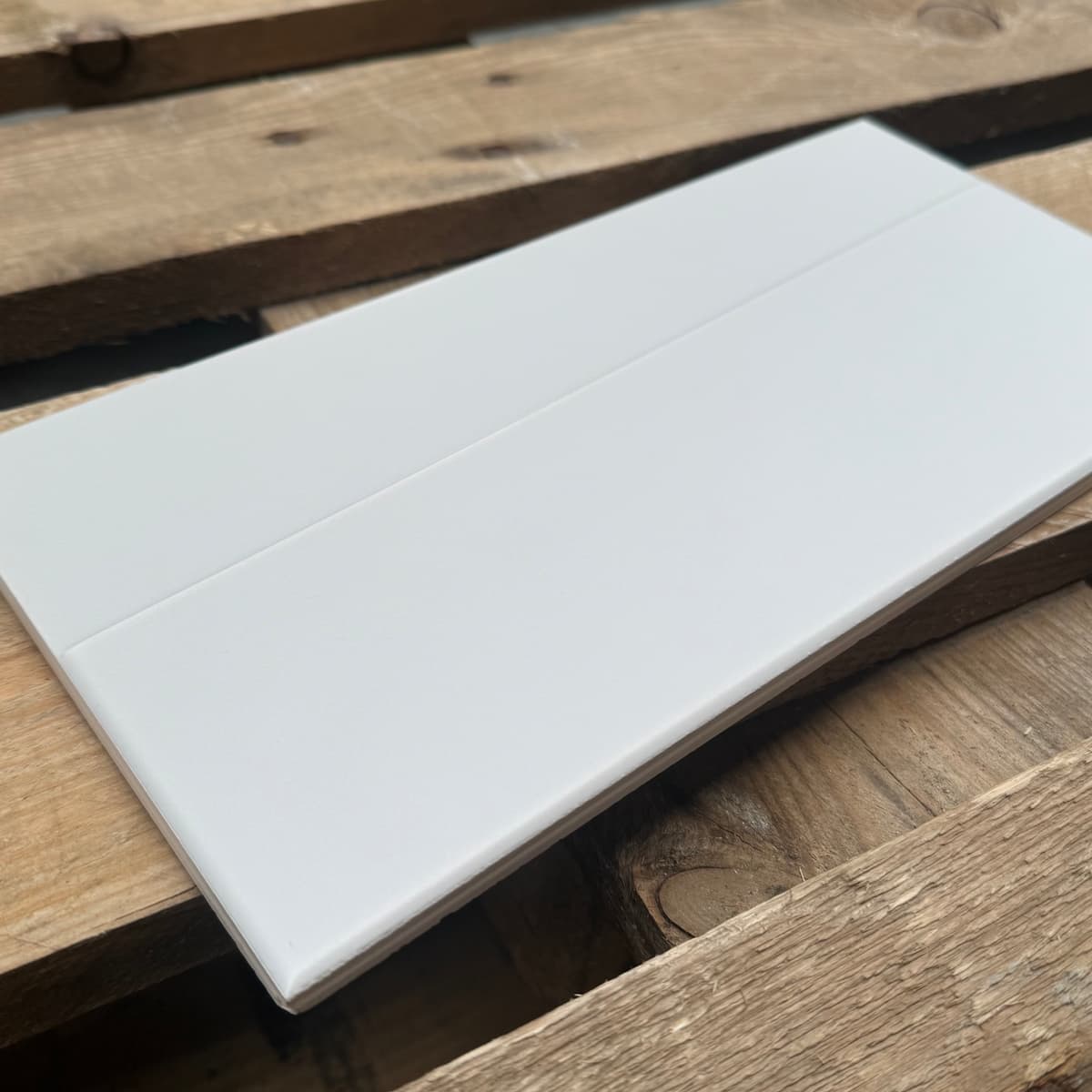Wandtegel van het merk Mosa. De tegel heeft een subtiel lijnaccent welke zorgt voor een speels effect op de wand!