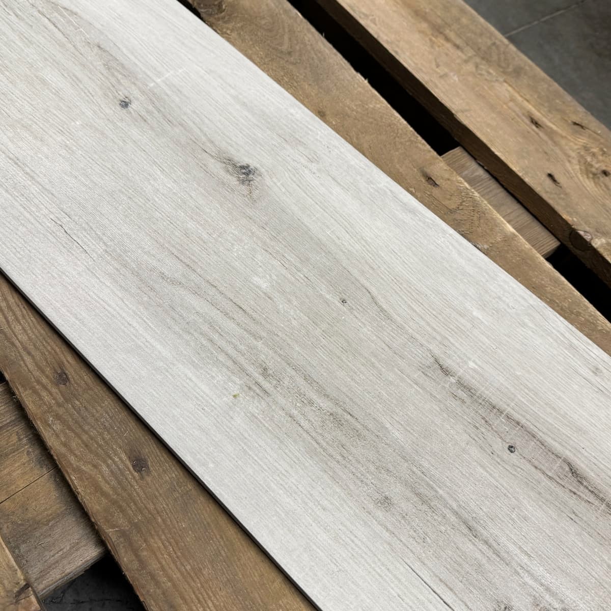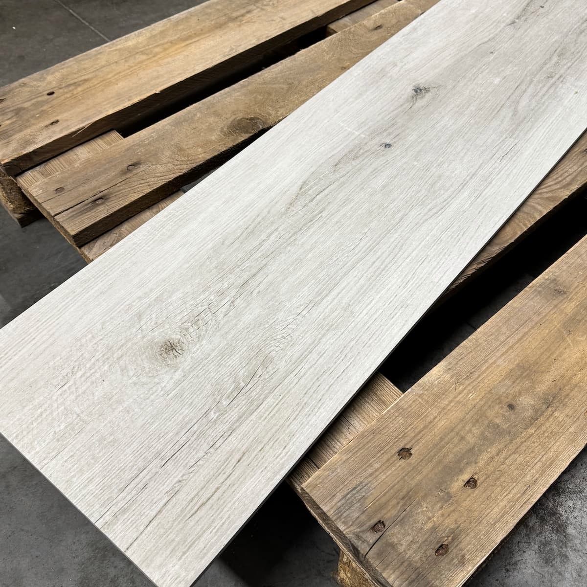 Lang formaat houtlook in lichte tint. Zorgt voor een natuurlijke uitstraling.