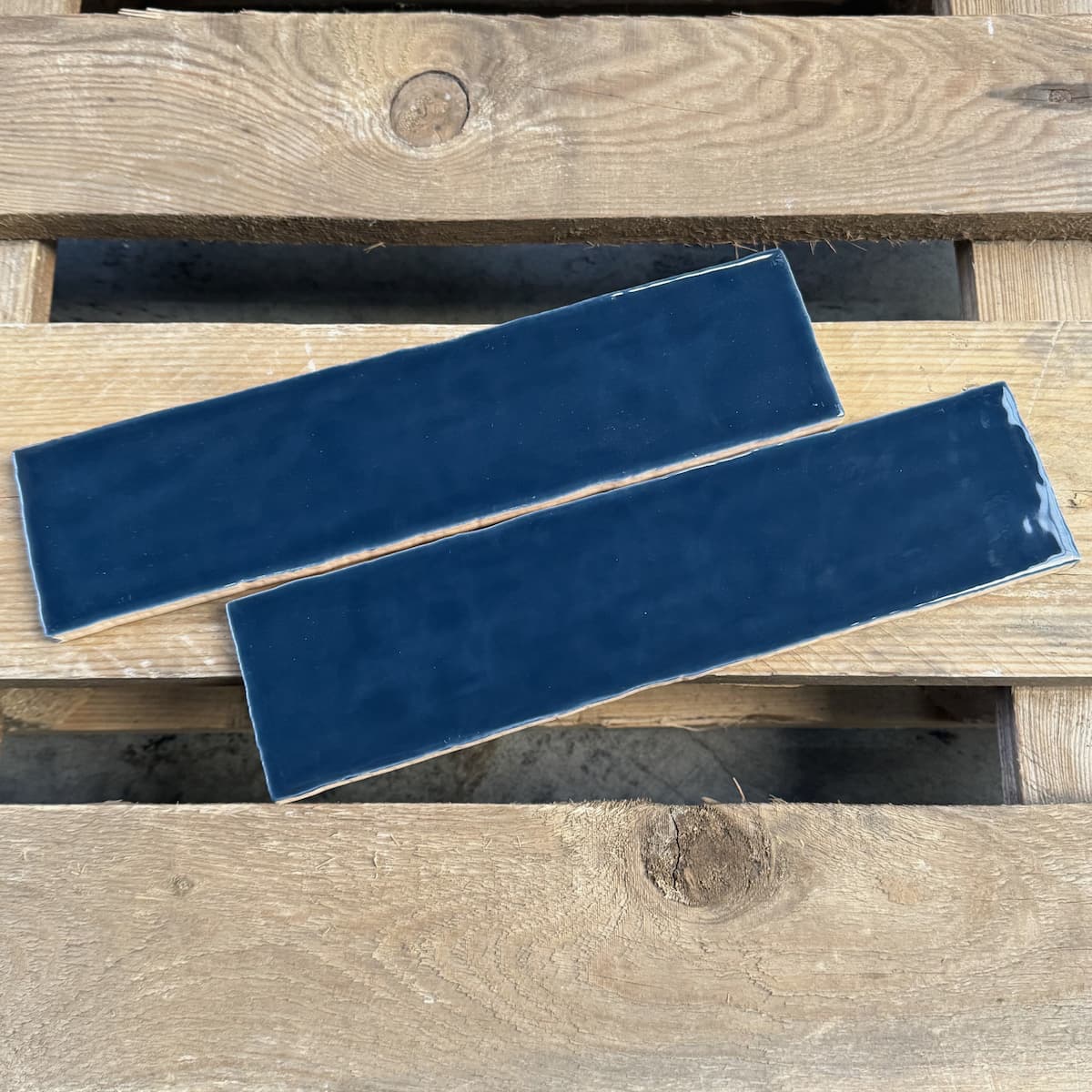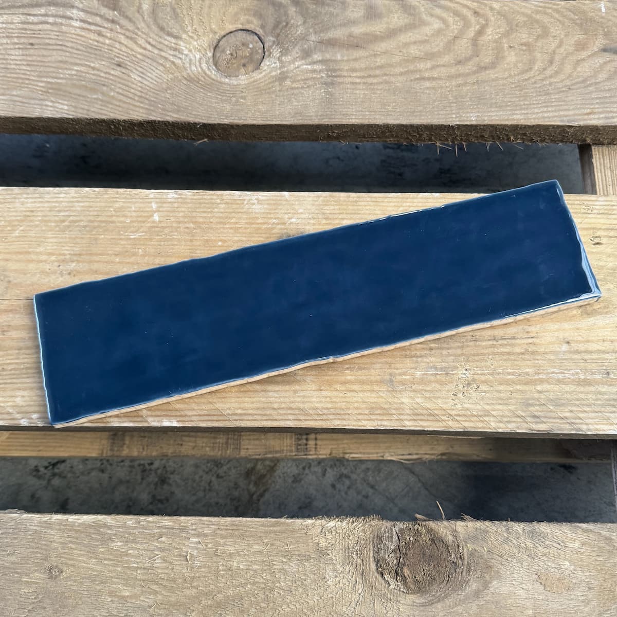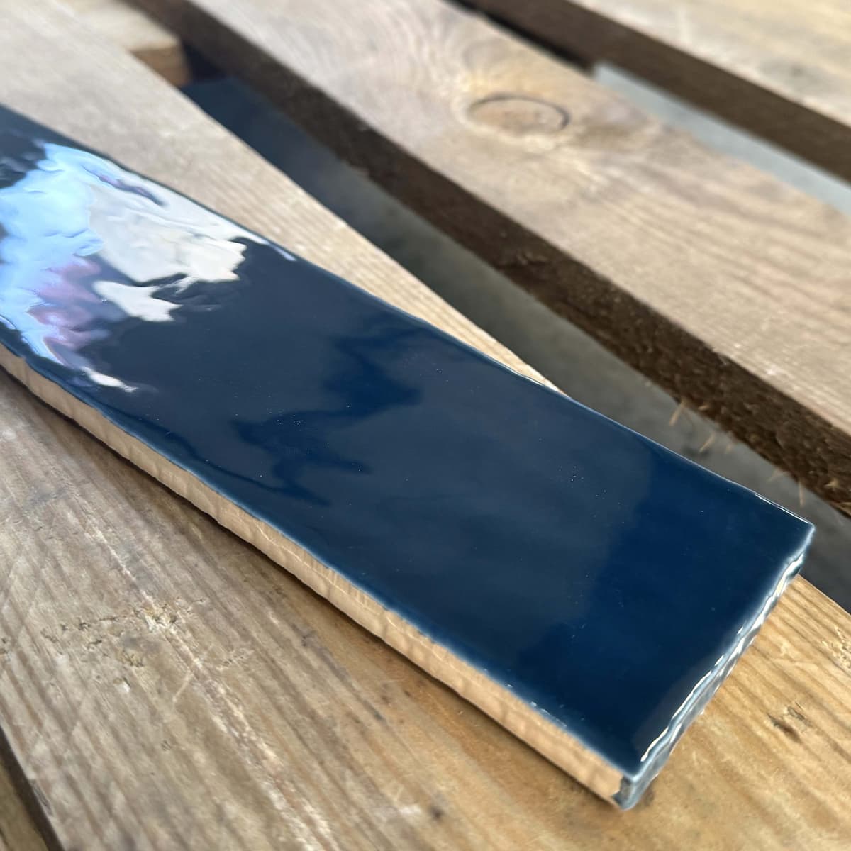 Handvorm tegel in diepe blauwe kleur. Geeft de wand een speels en stijlvol karakter.